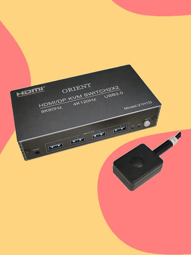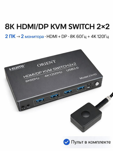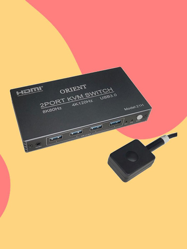 KVM переключатель HDMI 2x1 ORIENT HS21H 8K, 8K 60Гц / 4K 120Гц, USB 3.0, 2 ПК на 1 монитор
