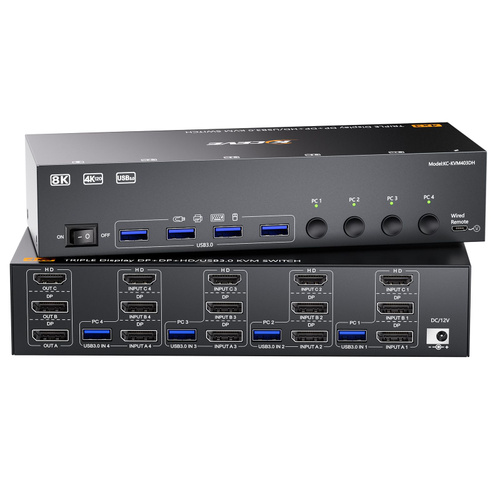 Переключатель KVM Switch AVE DPA-43 (4PC, Dual DP + HDMI 8K, USB 3.0, remote control, power adapter)