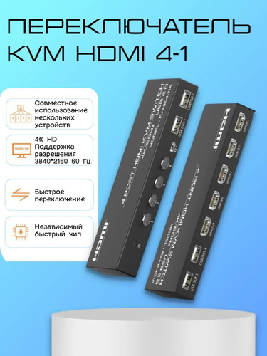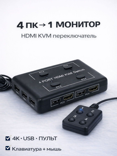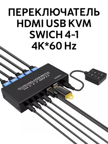 4K USB HDMI KVM Switch свитч, переключатель квм 4-1 свитчер модель 2023 года с выносной кнопкой