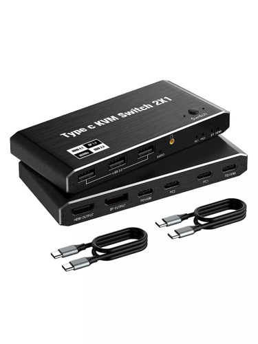 8K60Hz USB-C переключатель 2x1 HDMI DP выход, 4 USB2.0 порта, type-c