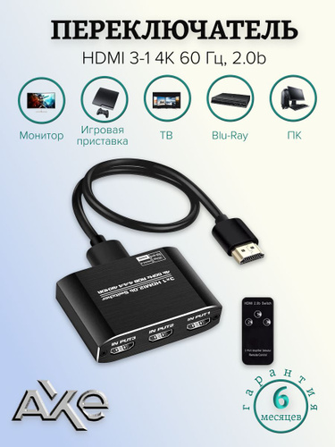 HDMI Переключатель switch вход 3 в 1 Выход с пультом ду для XBox, PS4, PS5 Pro, 4K 60 Гц, 2.0b