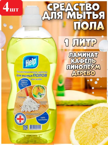 Help Средство чистящее для мытья полов Лимон 1л - 4шт