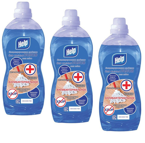 Моющее средство для полов Help, концентрированное, антибактериальное, 1000 мл, 3шт