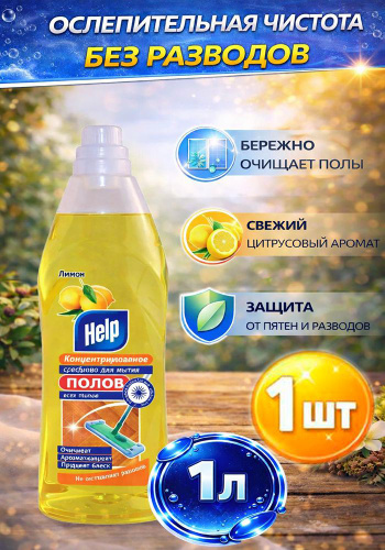 Чистящее средство для мытья пола Help / Хелп для всех видов полов с ароматом лимона 1л / бытовая химия для уборки дома
