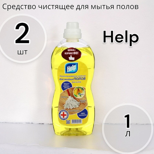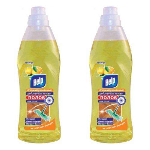 Чистящее средство для мытья пола Help / Хелп для всех видов полов с ароматом лимона 1л / бытовая химия для уборки дома (комплект из 2 шт)