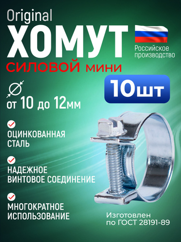 Хомут силовой мини 10-12 мм, 10 шт., оцинкованная сталь W1