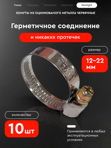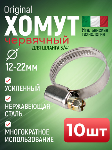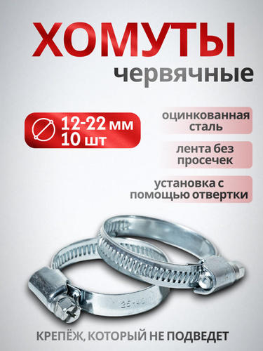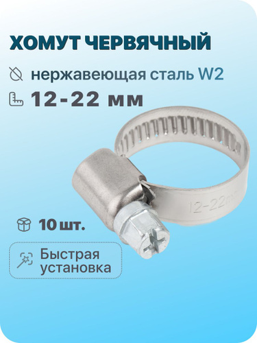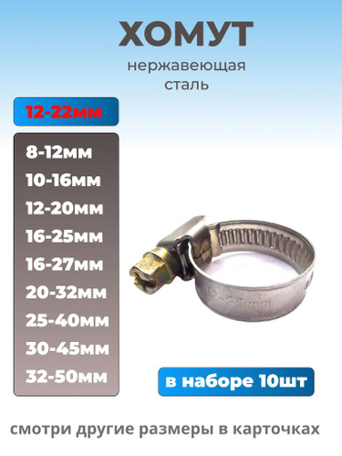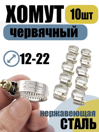 Хомут червячный 12-22 мм, 10 шт нержавеющая сталь
