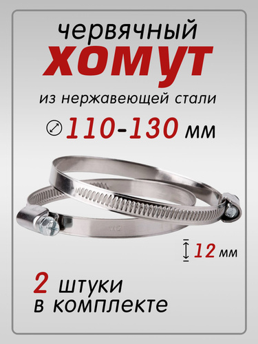 Хомут 110-130мм, 2шт. для монтажа гибких воздуховодов, гофротруб, патрубков, ширина 12, (хомуты червячные металлические нержавеющие)