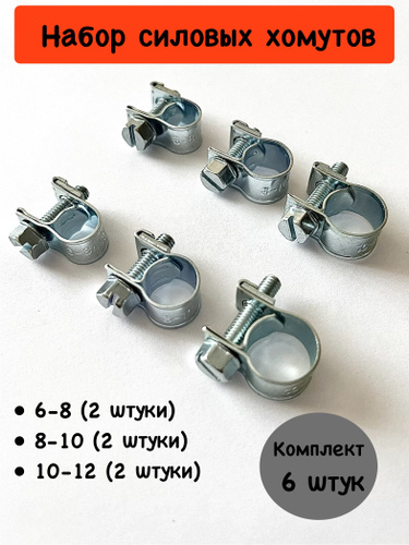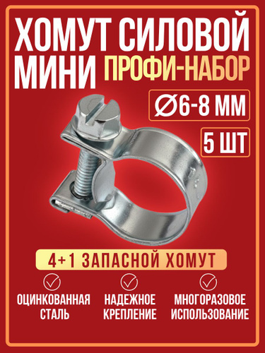 Хомут силовой мини 6-8 мм (5шт), хомуты металлические для шланга