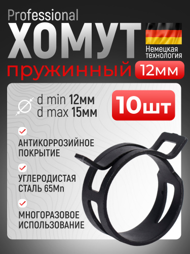 Хомут пружинный Premium 12 мм, 10 шт., самозажимной