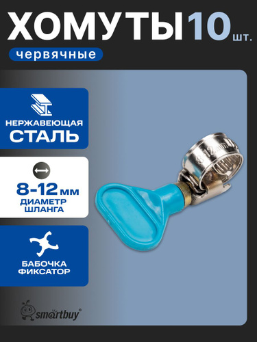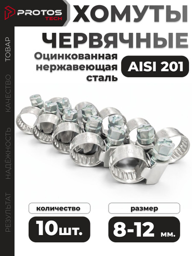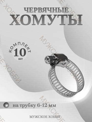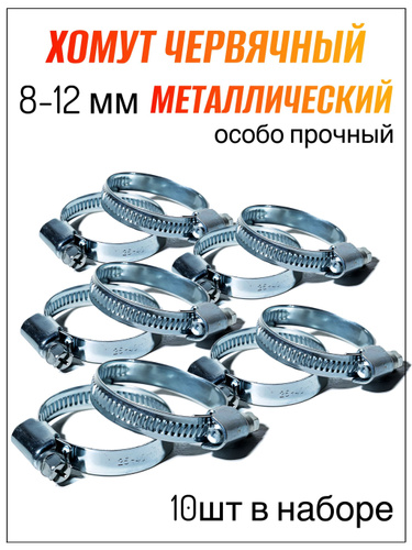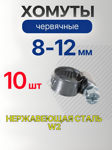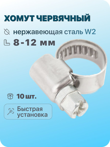 Хомут червячный 8-12 мм, 10 шт. (хомуты металлические для шланга)