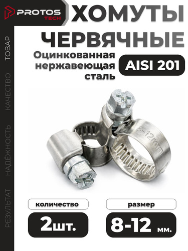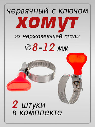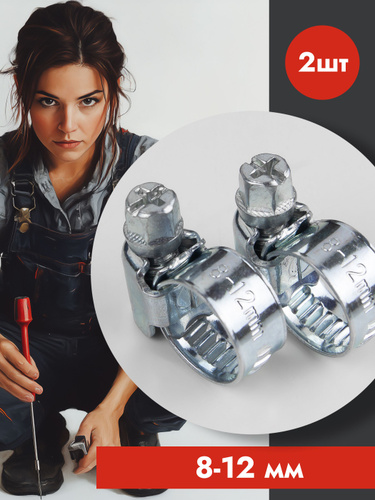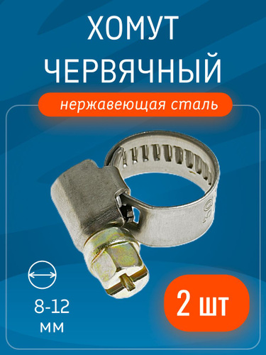 Хомут червячный 8-12 мм, 2 шт нержавеющая сталь