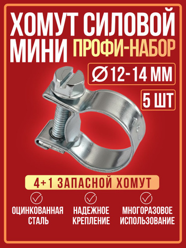 Хомут силовой мини 14-16 мм (5шт), хомуты металлические для шланга