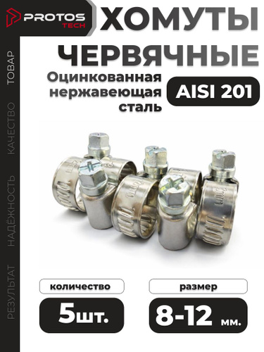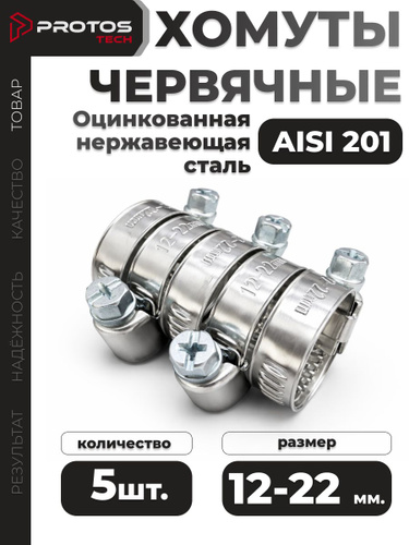 PROTOS Хомут 9мм x 22мм от 12мм до 22мм, 5 шт., Нержавеющая сталь