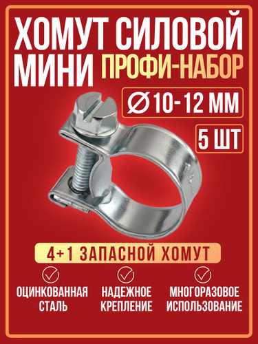 Хомут силовой мини 10-12 мм (5шт), хомуты металлические для шланга