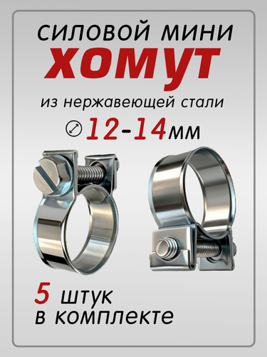Хомут силовой мини (стяжной) 12-14мм, 5 шт. (нержавеющая сталь, для крепления и герметизации шлангов и гибких трубопроводов)