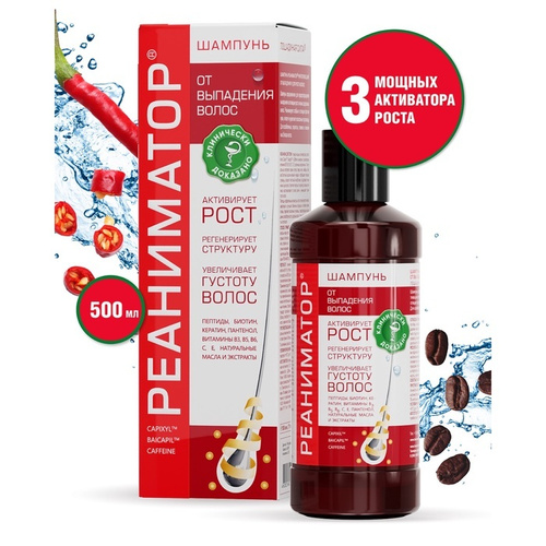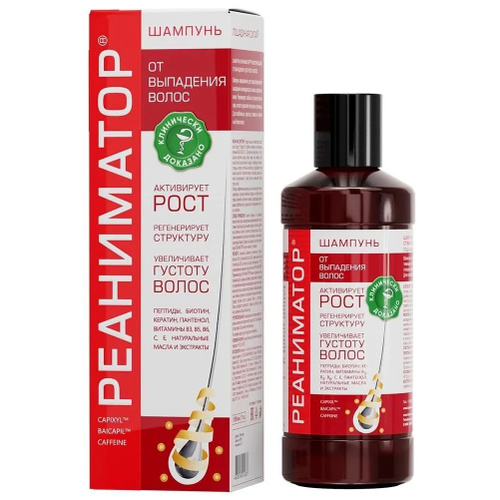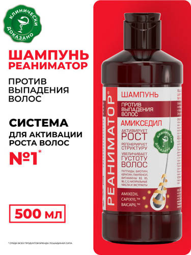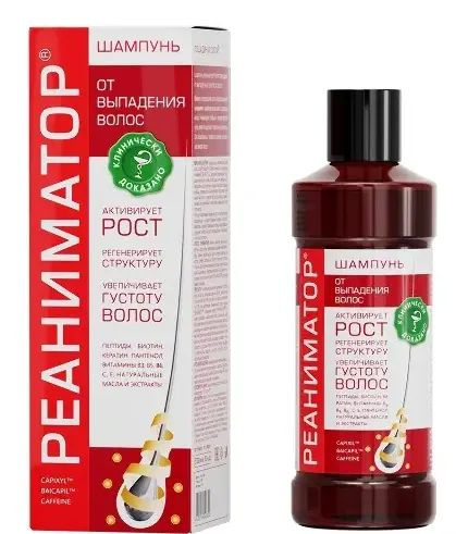 РЕАНИМАТОР Шампунь против выпадения волос Лошадиная сила, для роста и укрепления, с комплексом витаминов, аргинином, кератином и 7 натуральных экстрактов, профессиональный, женский и мужской, 500мл