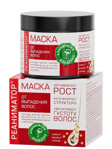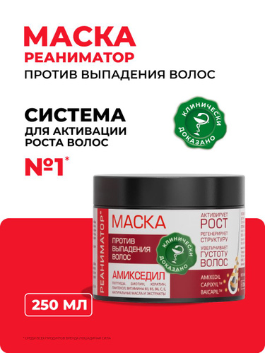 РЕАНИМАТОР Маска для волос укрепляющая Лошадиная сила, активация роста и густоты, восстанавливающая, против выпадения волос с комплексом витаминов, аргинином и кератином, профессиональная, 250 мл