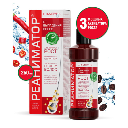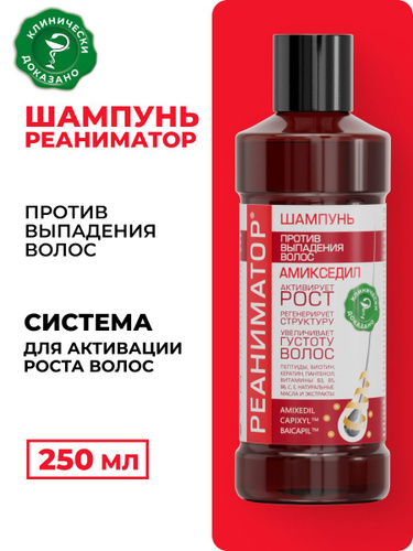 РЕАНИМАТОР Шампунь против выпадения волос Лошадиная сила, для роста и укрепления, с комплексом витаминов, аргинином, кератином и 7 натуральных экстрактов, профессиональный, женский и мужской, 250 мл