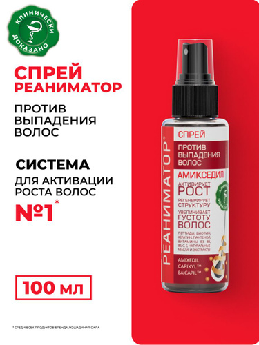 РЕАНИМАТОР Спрей сыворотка против выпадения волос, активатор роста и густоты волос, с комплексом витаминов, аргинином и кератином, профессиональный, женский и мужской, 100 мл