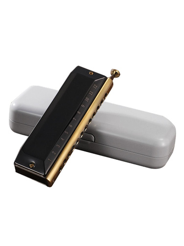 Хроматическая губная гармоника на 12 отверстий с 48 нотами - черная