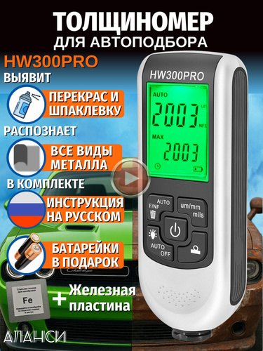 Толщиномер автомобильный для лакокрасочных покрытий HW-300 MAX/ Профессиональный прибор для автоподбора