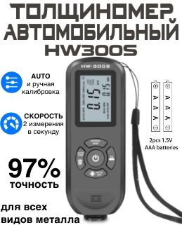 Толщиномер ЛКП для автомобиля, HW300-MAX, FE/NFE,0-2000 мкм