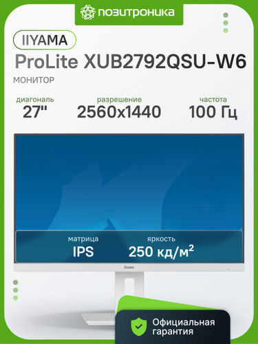 iiyama 27" Монитор Монитор 27" Iiyama ProLite XUB2792QSU-W6 IPS 2560x1440, 100 Гц, 0.4 мс, 16:9, 250 кд/м, 1xHDMI, 1xDP, 4xUSB, 1x3.5 мм, 2x2 Вт, белый, белый