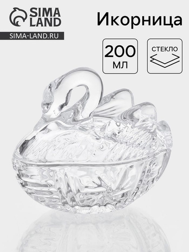 Икорница "Лебедь", 200 мл, 13.5х8.7х13 см, стекло, прозрачная