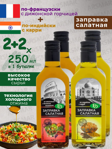Заправка для салата по-французски 2шт+По-индийски 2шт по 250мл БизнесОйл