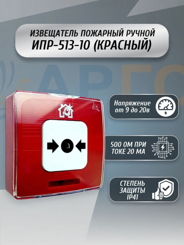 Извещатель пожарный ручной ИПР-513-10 (красный) для подачи сигнала "Пожар"