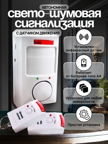 Автономная свето-шумовая сигнализация / Защита от воров с датчиком движения Warning Light RV-06 и 2-мя пультами управления