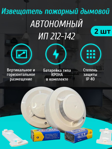 Набор из 2шт - Извещатель пожарный дымовой автономный ИП 212-142, датчик дыма (батарейка крона в комплекте)