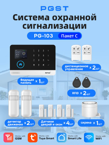 PGST Сигнализация с несколькими датчиками для дома и офиса с подключением к умному дому, GSM/Wi-Fi