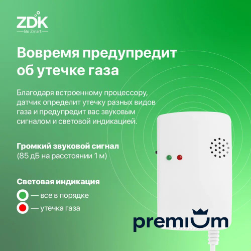 Датчик утечки газа, Светозвуковой, Сигнализатор утечки бытового газа, Gaz