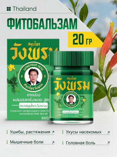 WANG PROM Зеленый Тайский бальзам Ванг Пром, THAI HERBAL GREEN BALM, вангпром 20 гр.