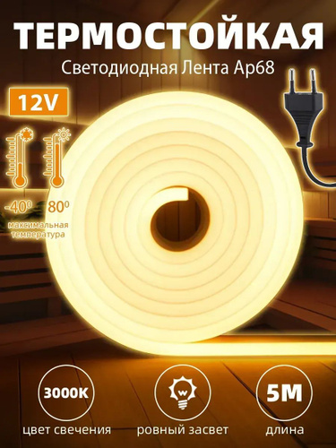 Светодиодная лента для бани и сауны, 5м, 8x16мм, IP68