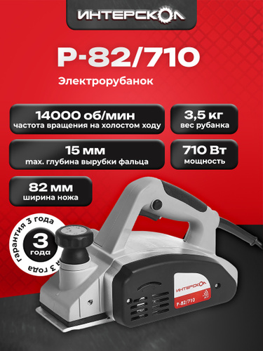 Интерскол Электрорубанок Р-82/710 710 Вт, ширина 82 мм, выборка четверти 15 мм, алюминиевая платформа, с мешком