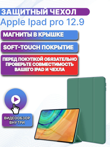 Защитный чехол для ipad 12.9 pro с покрытием soft-touch, зеленый 3,4,5,6 поколение 2018, 2020, 2021, 2022