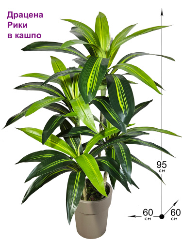 Цветок искусственный 95см напольный, Драцена Рики в стильном кашпо, ФитоПарк