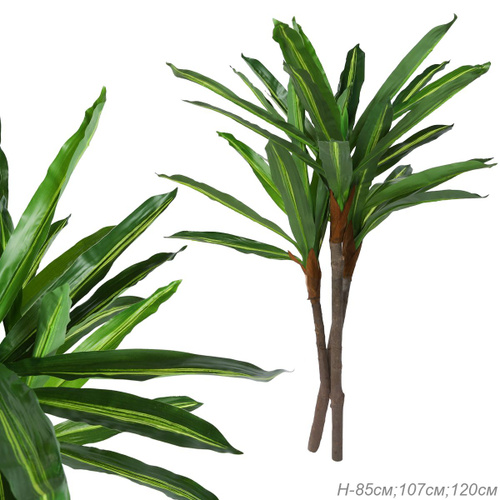 Искусственное дерево Юкка, 118 см, с 3-мя стволами, в пластиковом горшке