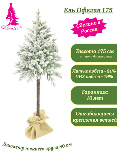 Искусственная новогодняя елка на высокой ножке Beatrees Офелия заснеженная, зеленая, литая, 175 см