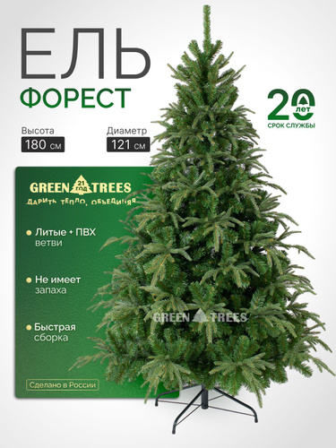 Елка искусственная новогодняя Форесто GREENTREES 180 см, хвоя литая + ПВХ