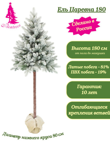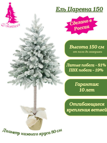 Искусственная новогодняя елка на высокой ножке Beatrees Царевна заснеженная, зеленая, литая, 180 см