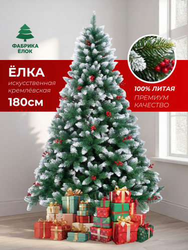Елка искусственная новогодняя, ель с ягодами заснеженная 180 см