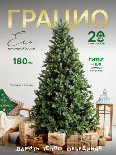 Елка искусственная новогодняя Грацио GREENTREES 180 см, хвоя литая + ПВХ