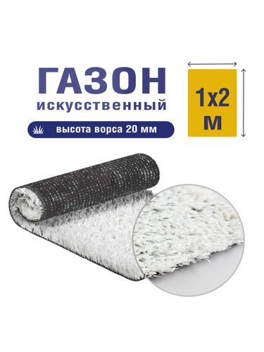 Трава искусственная белая 20 мм 2м*1м / искусственный газон / рулонный газон