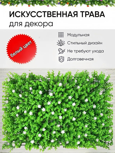 Трава искусственная белая 20 мм 1м*1м / искусственный газон / рулонный газон