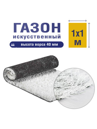 Трава искусственная белая 40 мм спортивная 2м*1м / искусственный газон / рулонный газон