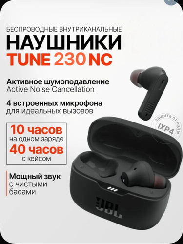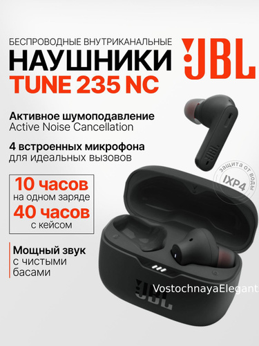 TWS наушники беспроводные JBL Tune 235NC, Bluetooth-наушники с микрофоном, с шумоподавлением, черные